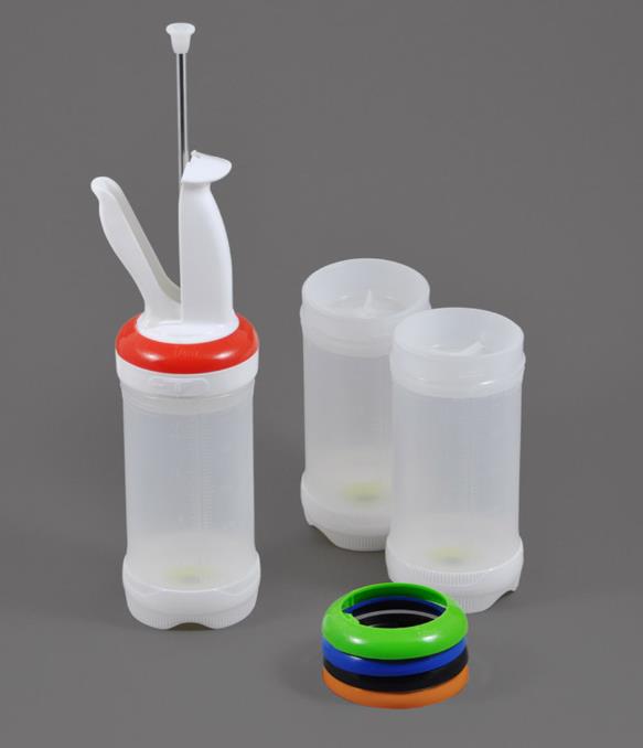 Dispone de 5 "anillos" intercabiables para regular la dosificación:
